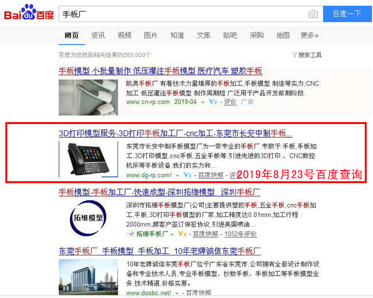 手板廠 百度(PC)自然排名第1名